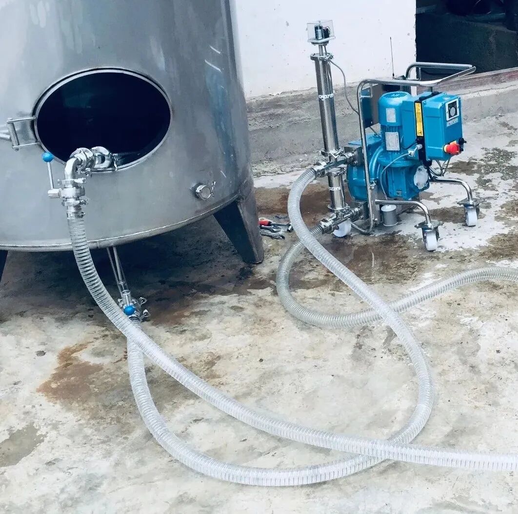 说起蠕动泵,好多我们行业内的人都不甚了解,这里不妨也讲讲它的原理和优缺点。原理其实很简单:通过图中的旋转机构,挤压橡胶囊腔(管)时,产生负压吸取液体,挤压轴承转完一圈时,又产生正压将囊腔内的液体从另一个方向排出。整个运转过程中,酒体进出囊腔,与机械装置没有任何物理接触,所以优点显而易见:不“伤”酒。