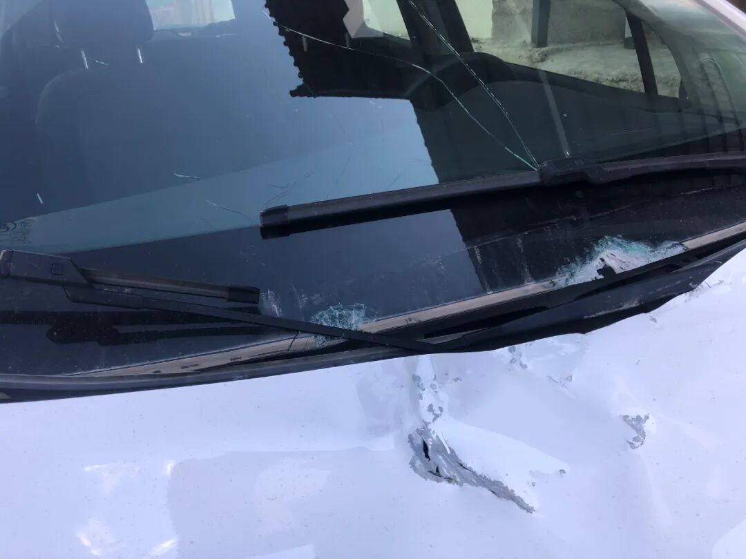 正好砸在机盖和挡风玻璃交界的位置,没有任何反应时间。假设哪怕只快一秒,落入车内,左侧澜沧江,右侧悬崖峭壁,后果不堪设想。