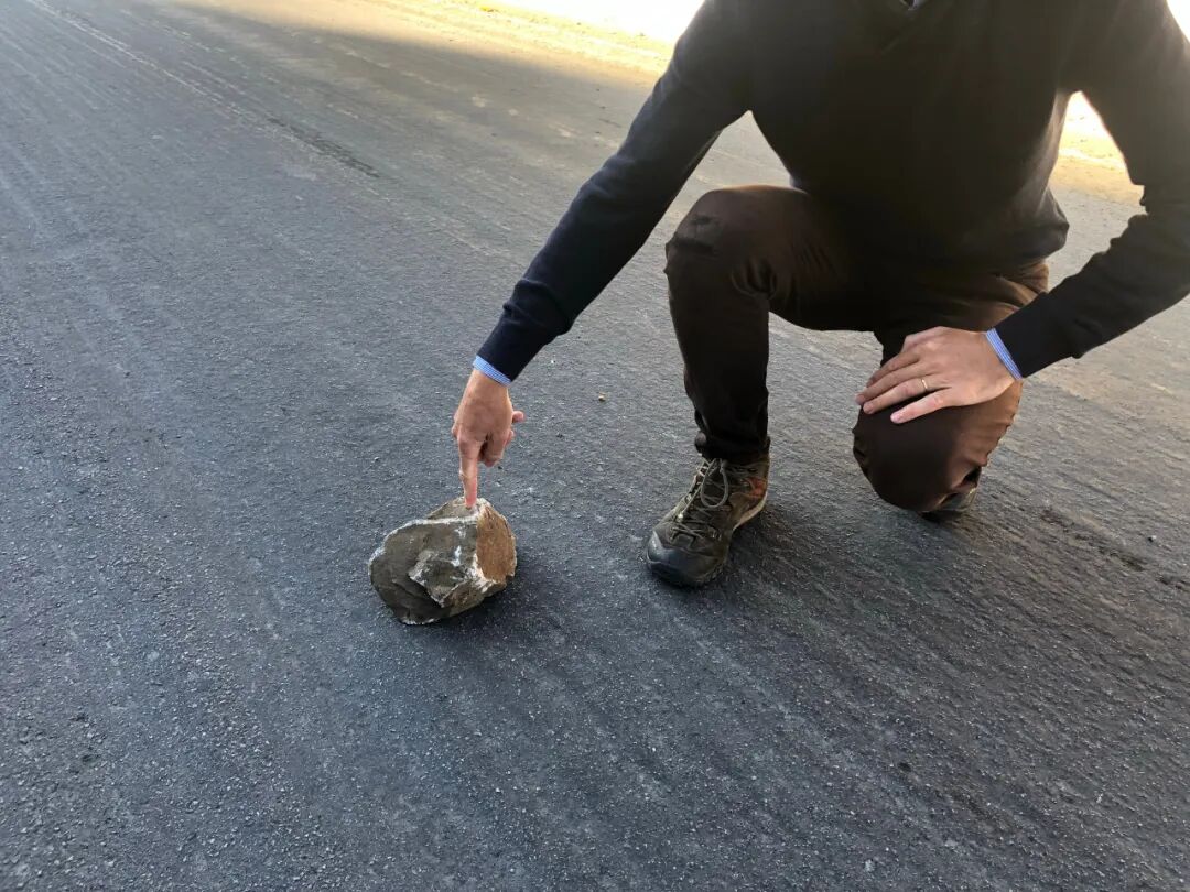 这块石头,目测比同行伙伴44码的鞋子还要结实一些: