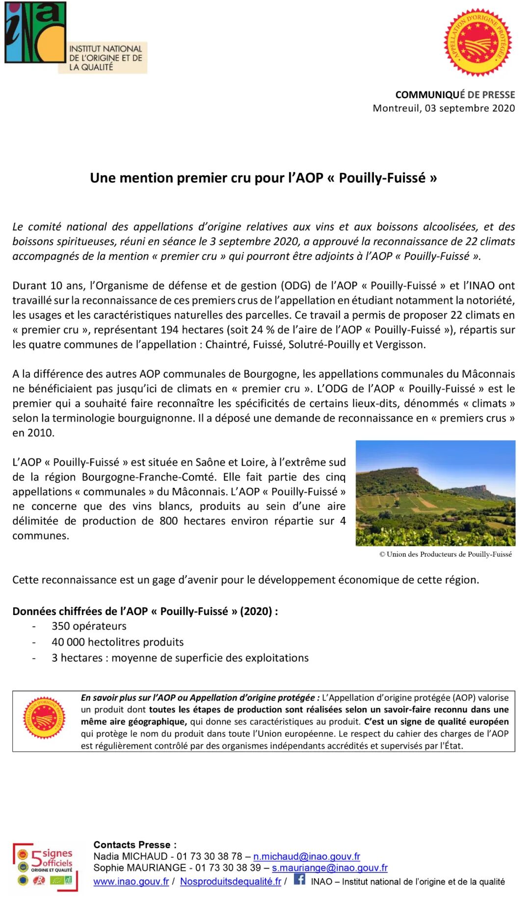 INAO 媒体公告法语原文